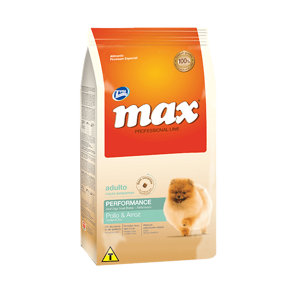 Max Adulto Razas Pequeñas Performance Pollo es una comida premium para perros adultos de razas pequeñas. enriquecido con vitaminas y minerales. Contiene antioxidantes. Alimento sin colorantes ni aromatizantes artificiales.
